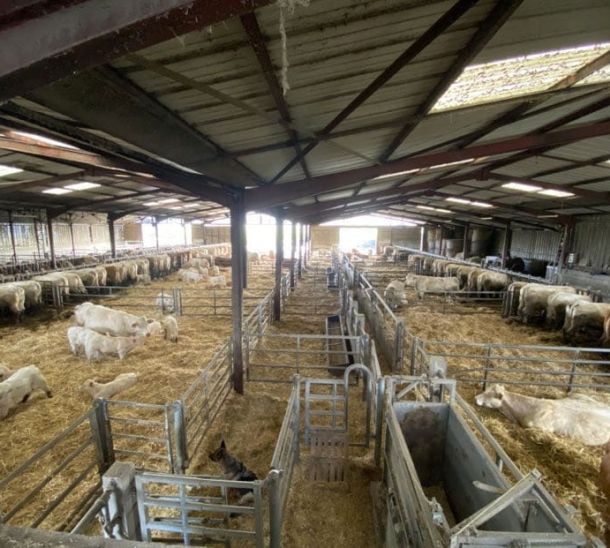 Vidéo du bâtiment d'élevage qui abrite limousines et charolaises