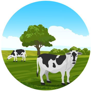 La ferme produit toute la nourriture nécessaire à l'équilibre alimentaire et à la santé des vaches : céréales - prairie pâturée - foin